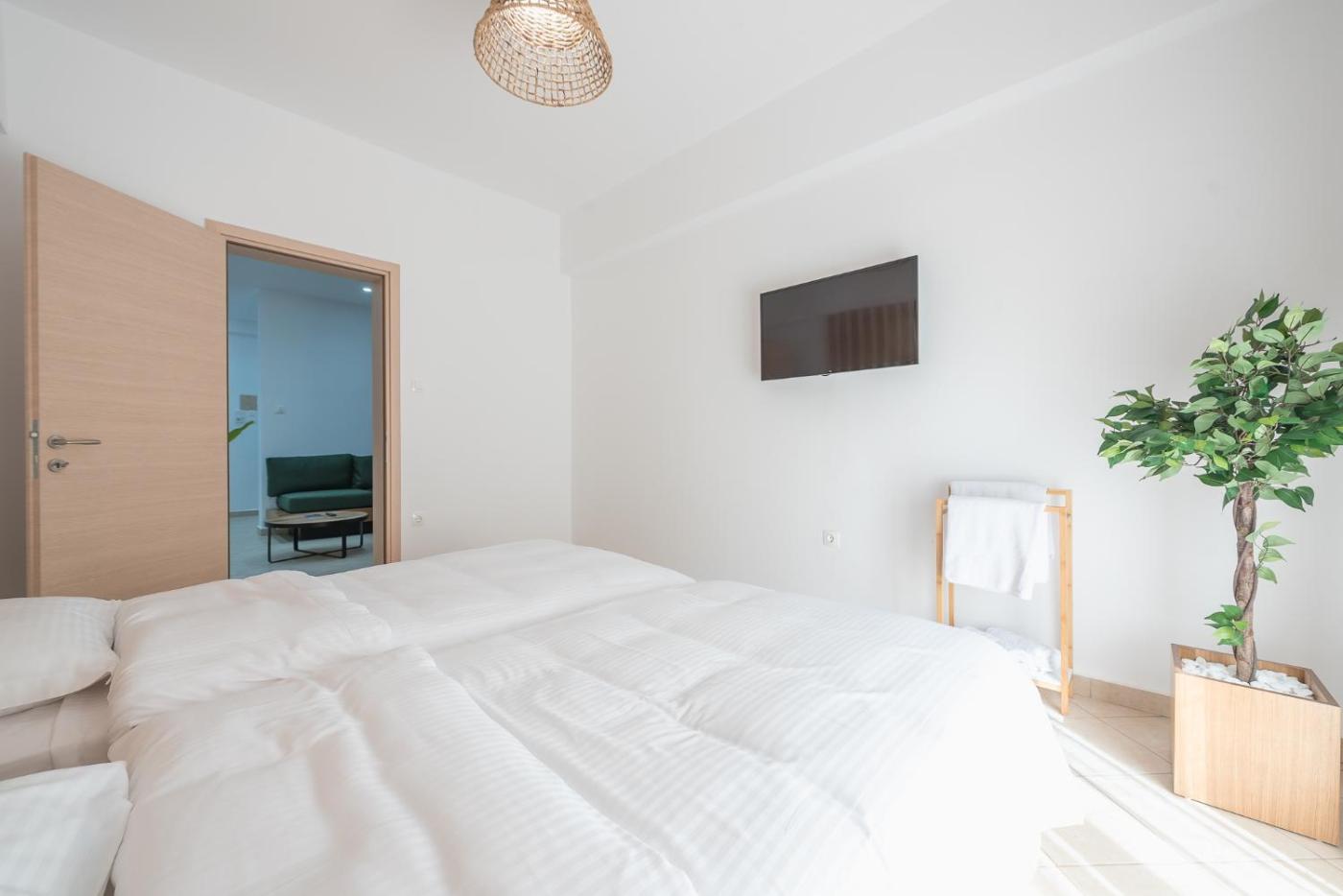 Two-Bedroom Apartment. Guests can make meals in the kitchen that is fitted with a stovetop, a refrigerator, kitchenware and an oven. The spacious apartment offers air conditioning, a washing machine, a tea and coffee maker, a seating area and a flat-screen TV with streaming services. The unit has 2 beds.
